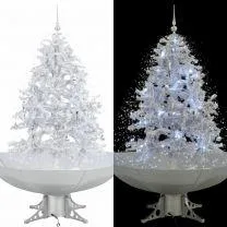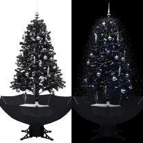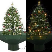 Kerstboom sneeuwend met paraplubasis